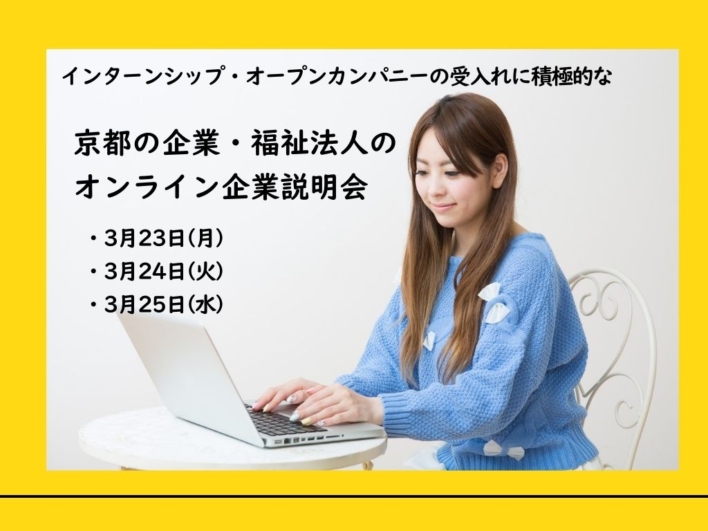 インターンシップ・オープンカンパニーの受入れに積極的な京都の企業・福祉法人のオンライン企業説明会 2026年2月26日 新着情報カテゴリートピックス/学生 インターンシップ・オープンカンパニーの受入れに積極的な京都の企業・福祉法人のオンライン企業説明会 学生の皆様に企業様の魅力をより身近に感じていただく機会として、 「インターンシップ・オープンカンパニーの受入れに積極的な京... 詳しく見る