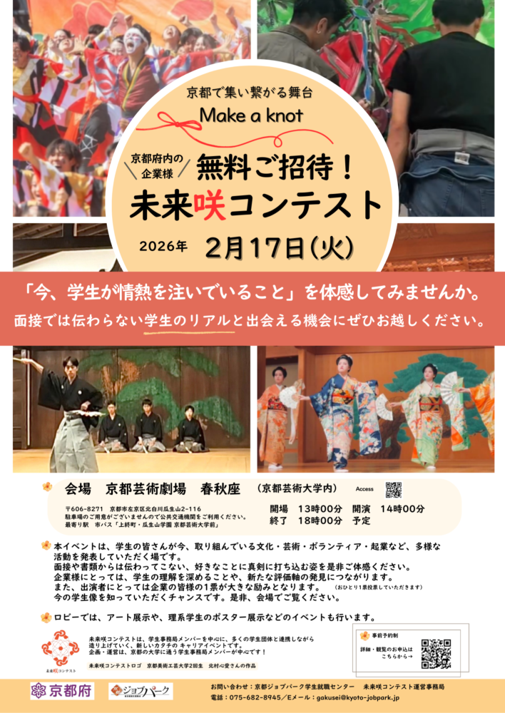 京都ジョブパーク学生就職センター 未来咲コンテスト運営事務局 担当 南・植西