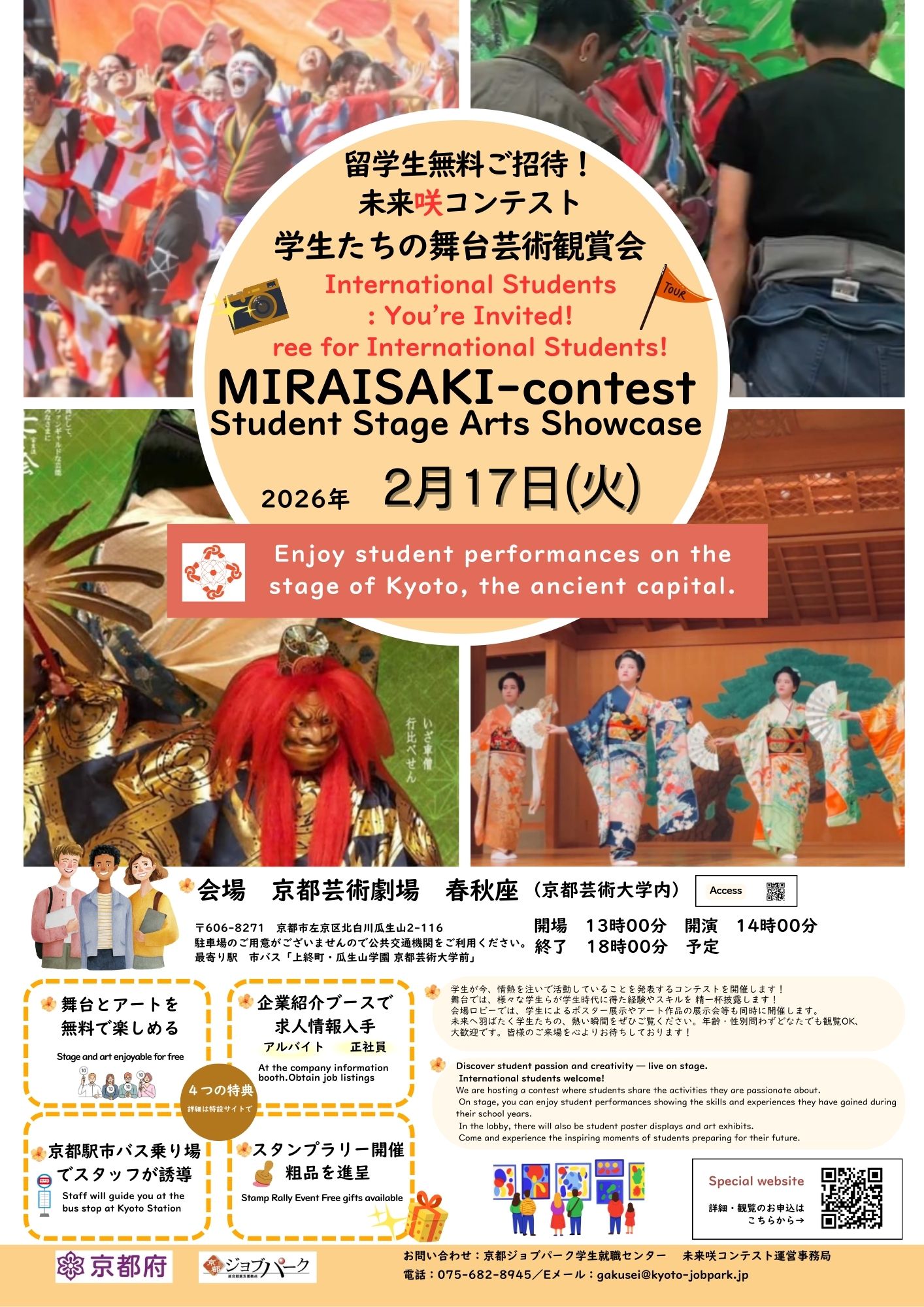 電話:075-682-8945/Eメール:gakusei@kyoto-jobpark.jp