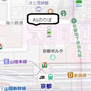のいずれかのバスに乗りますので、それぞれの時間までに京都駅(中央口方面)A1のりばへお越しください。
